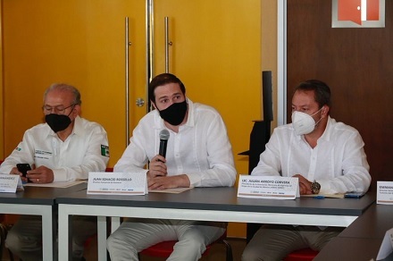 El secretario de Turismo del Gobierno de México, Miguel Torruco Marqués, junto con tres directores de líneas aéreas, presentaron las nuevas rutas y frecuencias que fortalecerán la conectividad en la Región Maya.